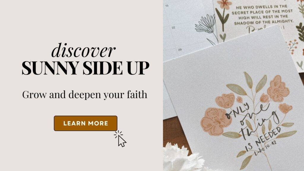 SUNNY SIDE UP is a new monthly email subscription to dive further into His Word and know His heart and promises for us. Its purpose is to cultivate deep roots and understanding in your faith, with a Bible-centred and focused Devotional with Journal prompts and accompanying printable artwork.