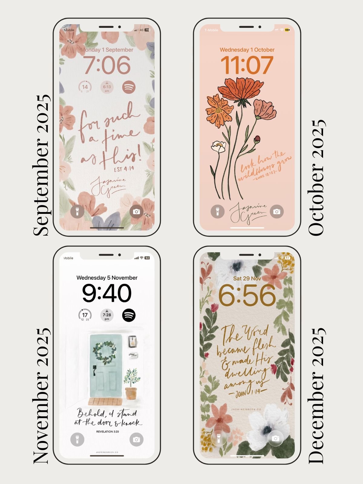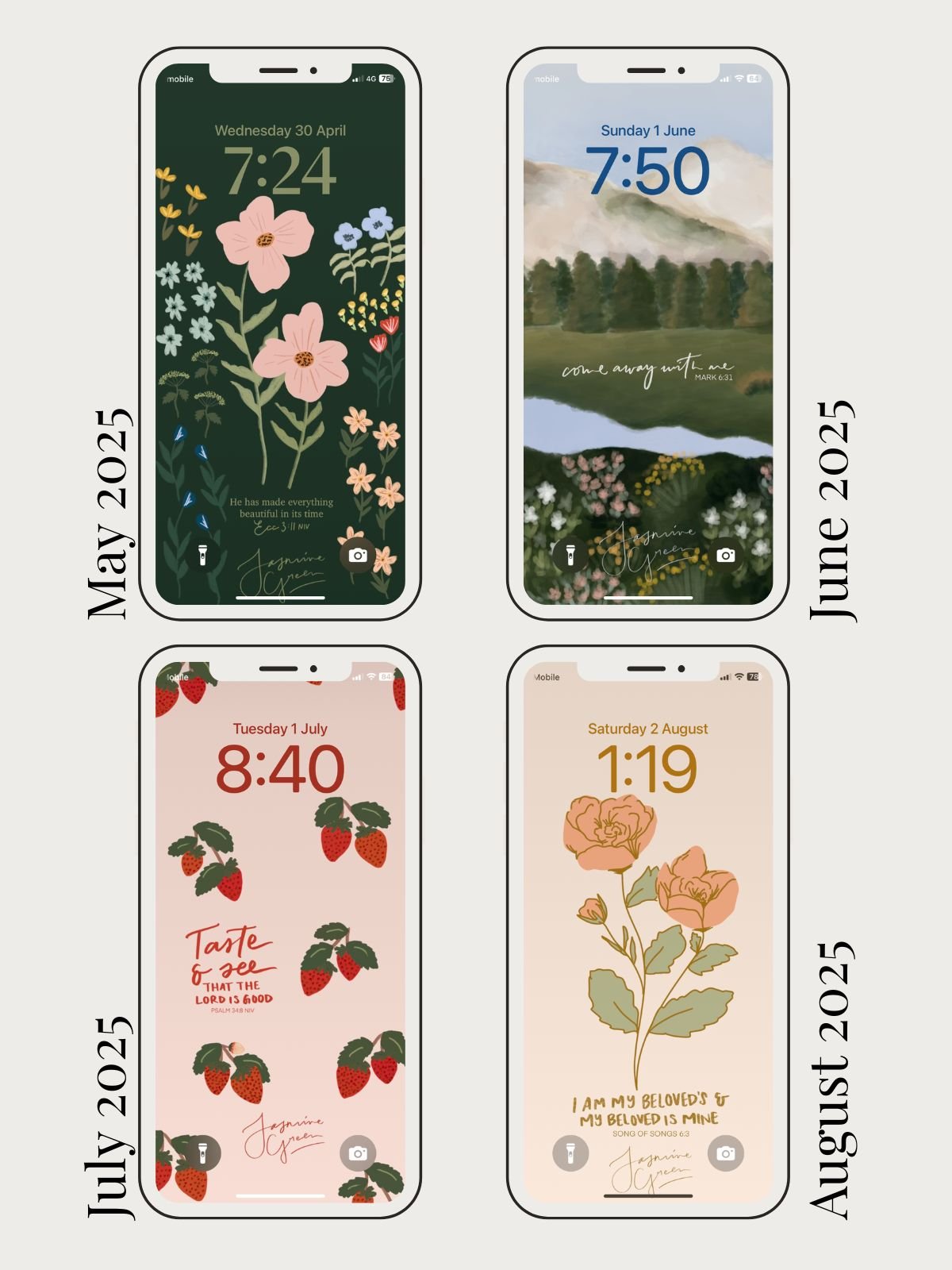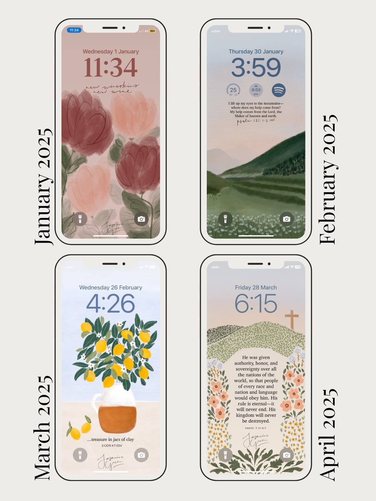 Each month I send a new, illustrated faith-based phone wallpaper to Inbox Sunshine subscribers. If you missed an earlier month or just want to change things up for a few months with a faith-uplifting, Biblically-based wallpaper/lockscreen, this 2025 Phone Wallpaper Collection is just the ticket.